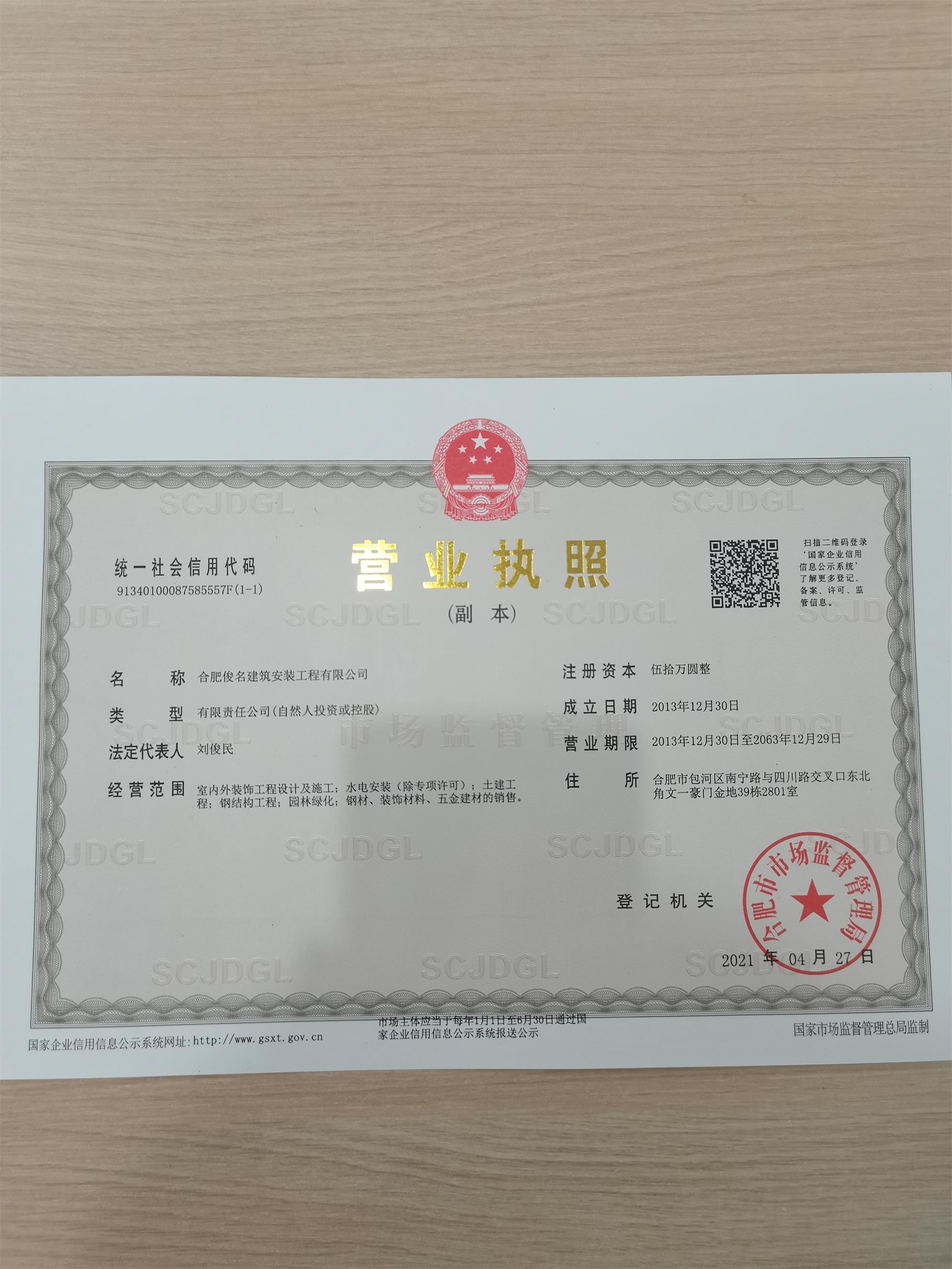 合肥俊名建筑安裝工程有限公司 版權(quán)所有 免責聲明 皖I(lǐng)CP備2021015074號-1 營業(yè)執(zhí)照